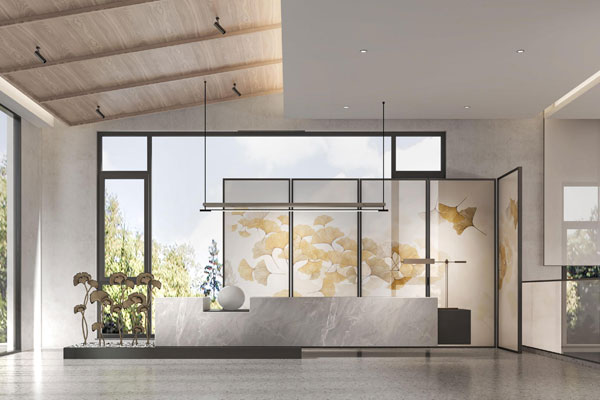 新誠國際酒店裝修設(shè)計從駝人集團文化中提取出沙漠綠洲(希望)、駝人之光(引領(lǐng))、駝鈴精神(旋律)、一帶一路(前行)等元素,打造了一個具有國際化視野、新東方中式風采商務(wù)酒店空間。酒店大堂接待區(qū)背景選取意化的山峰與駱駝,代表了駝人集團砥礪前行的開拓精神。在酒店軟裝設(shè)計中,富有地方特色的豫劇、汴繡、汝瓷等元素都成為空間中的點睛之筆。