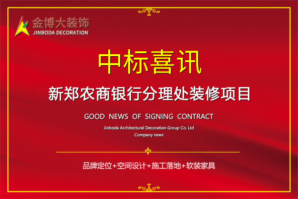 • 中標(biāo)|賀金博大建筑裝飾集團(tuán)中標(biāo)新鄭農(nóng)商銀行分理處室內(nèi)外裝修