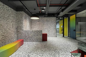 色彩是創(chuàng)造性探索的重要催化劑,基于這一概念,將其融入本項(xiàng)目是一個重大的辦公室裝修設(shè)計(jì)決策。整個設(shè)計(jì)過程面臨著諸多挑戰(zhàn):場地是深長線性的,整個空間僅在線性建筑的盡端才有外窗和微弱的光線進(jìn)入。盡管建筑先天不足,設(shè)計(jì)師還是利用開放的布局讓自然光最大限度的滲透到了工作空間和小房間中。 進(jìn)入辦公室后,一個充滿活力的接待區(qū)引領(lǐng)人們......