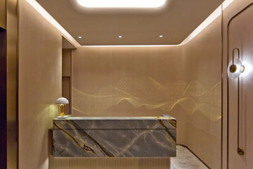 福臨門餐廳裝修設計方案旨在喚起粵菜的歷史和文化起源。將中國南方的建筑特色與規(guī)劃并置,賦予空間層次感和細節(jié),營造出精致而現(xiàn)代的環(huán)境。為了提供一種親密的到來感,迎接客人的是一個3米高帶有抽像圖案的黃銅屏風。通過將漢字“?!弊肿儞Q成不同的構圖,打造出定制的標志性圖案并營造出中國手工風格。 接待臺后面發(fā)光的“稻田”墻壁圖案進一......