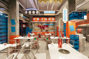 • 煙火氣市井風(fēng)現(xiàn)熬牛骨火鍋店裝修設(shè)計(jì)案例